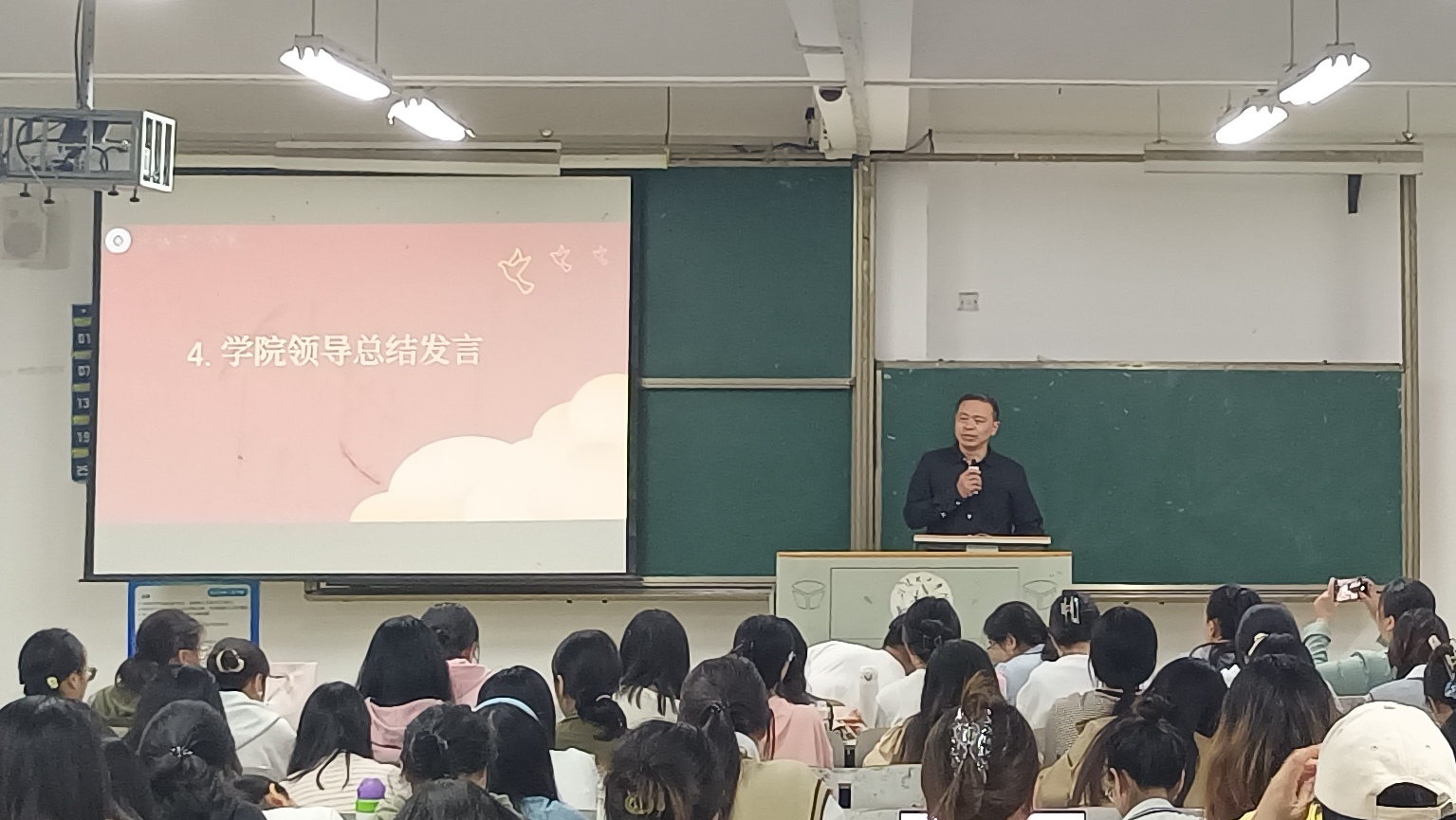大会首先由英语专业负责人罗倩对2025届英语专业实习实训情况做了简要回顾和总结,肯定了同学们几个月的努力付出,指出了实习过程中存在的问题,并给出了相应的意见和建议。
