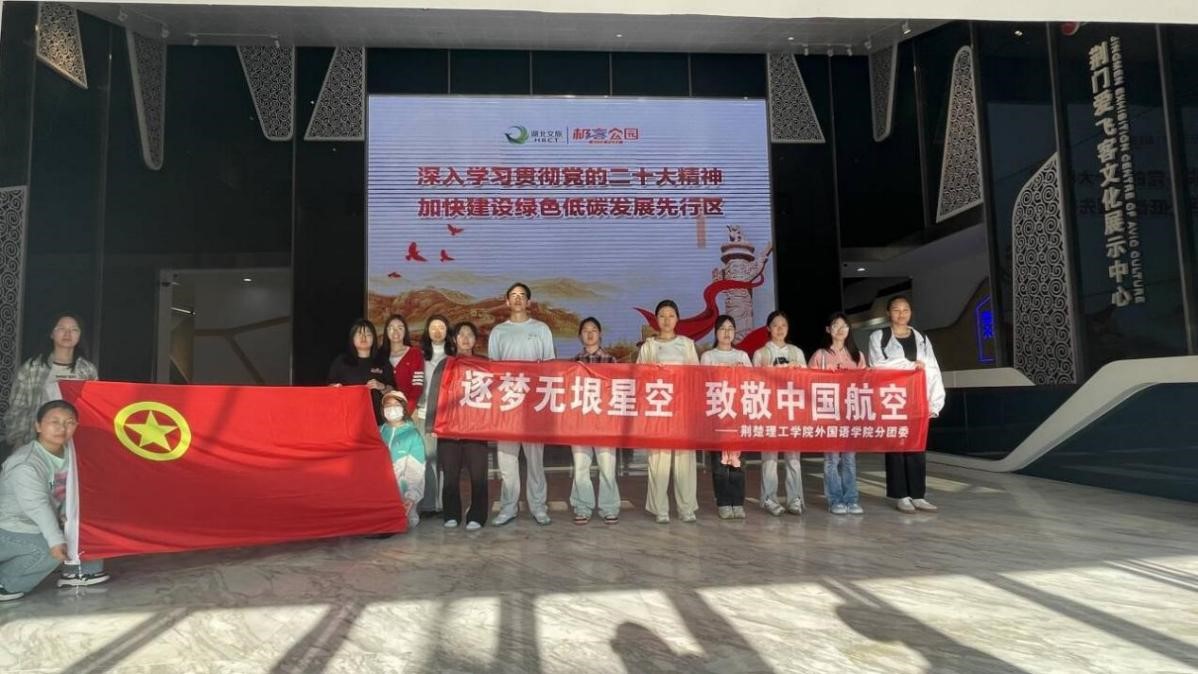 为迎接第九个中国航天日,4月17日下午,我院组织青年团员前往荆门市爱飞客航空小镇开展“逐梦无垠星空 致敬中国航空”主题团日活动。