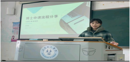 作为我院今年新引进教师,梁露菡老师收到了法国索邦大学语言学博士(奖学金项目)Offer。在申博成功经验分享中,她就法国及香港地区博士申请流程做了细致推介,重点说明了选导师、网申、科研选题申报及录取等相关流程和事项。梁露菡老师认为,在选择方面课题大于导师,导师大于学校,实力不是绝对,细节至关重要。