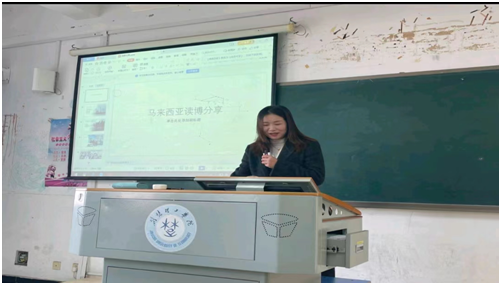 周静博士在读博学习经历汇报中首先介绍了马来西亚国家和学校的相关背景,接着分享了在吉隆坡建设大学读博的学习、生活经历,最后鼓励大家学会珍惜,懂得追求;克服孤独,到达彼岸。